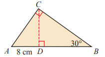 8. Perhatikan gambar segitiga ABC di bawah ini. Diketahui ∠ABC = 90°, ∠CDB = 45°, ∠CAB = 30°, dan AD = 2 cm. Tentukan panjang BC.