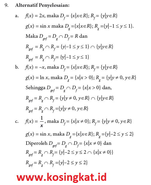 9. Untuk pasangan fungsi yang diberikan tentukanlah daerah asal dan daerah hasil fungsi komposisi gof.