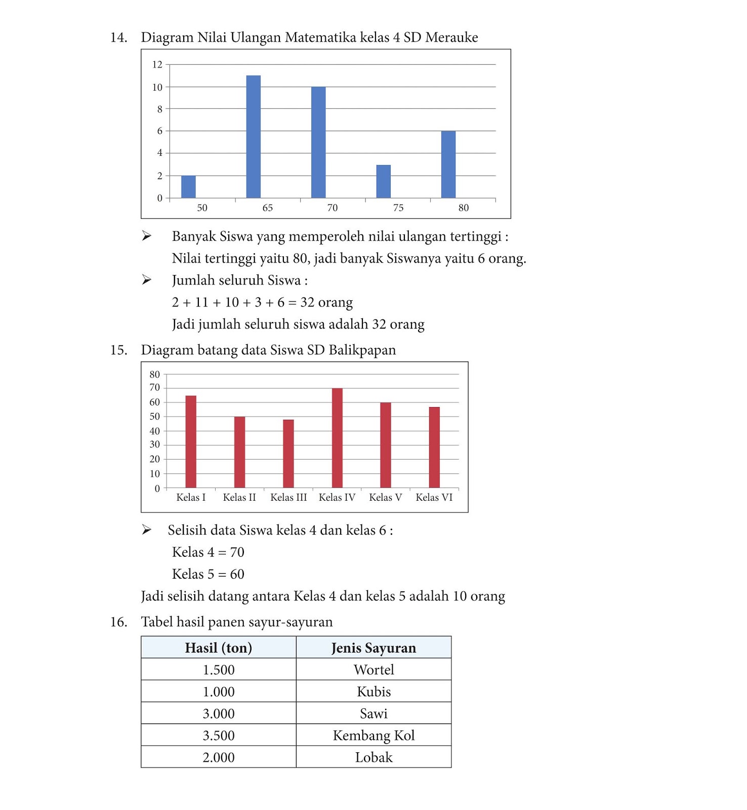 16. Tabel berikut menunjukkan hasil panen sayur-sayuran di suatu daerah. Sajikan tabel tersebut dalam diagram batang?
