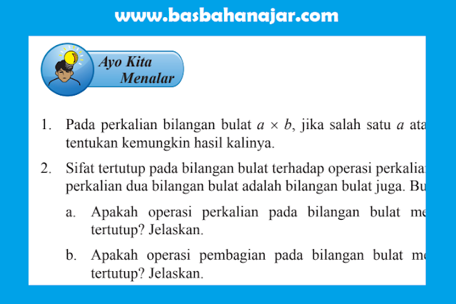2. Sifat tertutup pada bilangan bulat terhadap operasi perkalian artinya hasil perkalian dua bilangan bulat adalah bilangan bulat juga. Buatlah dugaan.