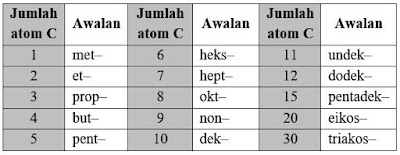 Untuk aturan penamaan IUPAC (International Union of Pure and Applied Chemistry) selanjutnya disesuaikan dengan banyaknya jumlah atom C dalam suatu gugus alkil ditambah akhiran “-il” seperti yang ditunjukkan pada tabel di bawah ini: